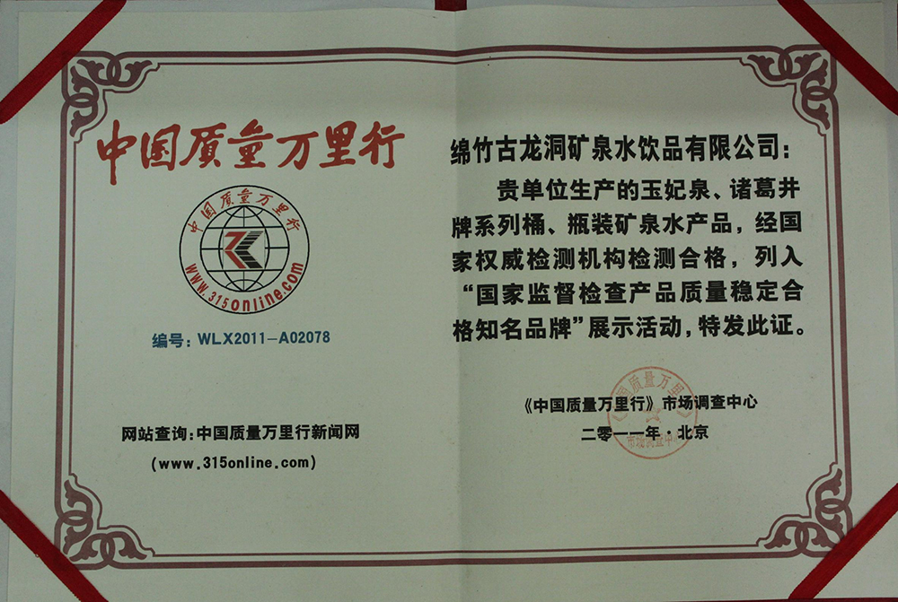 过去是酿造国内名酒——“剑南春”的主要水源之一,据载,唐代已被开发利用。水源符合饮用水卫生标准,经净化、过滤、灭菌等工艺处理后密封灌装,产品可直接饮用。