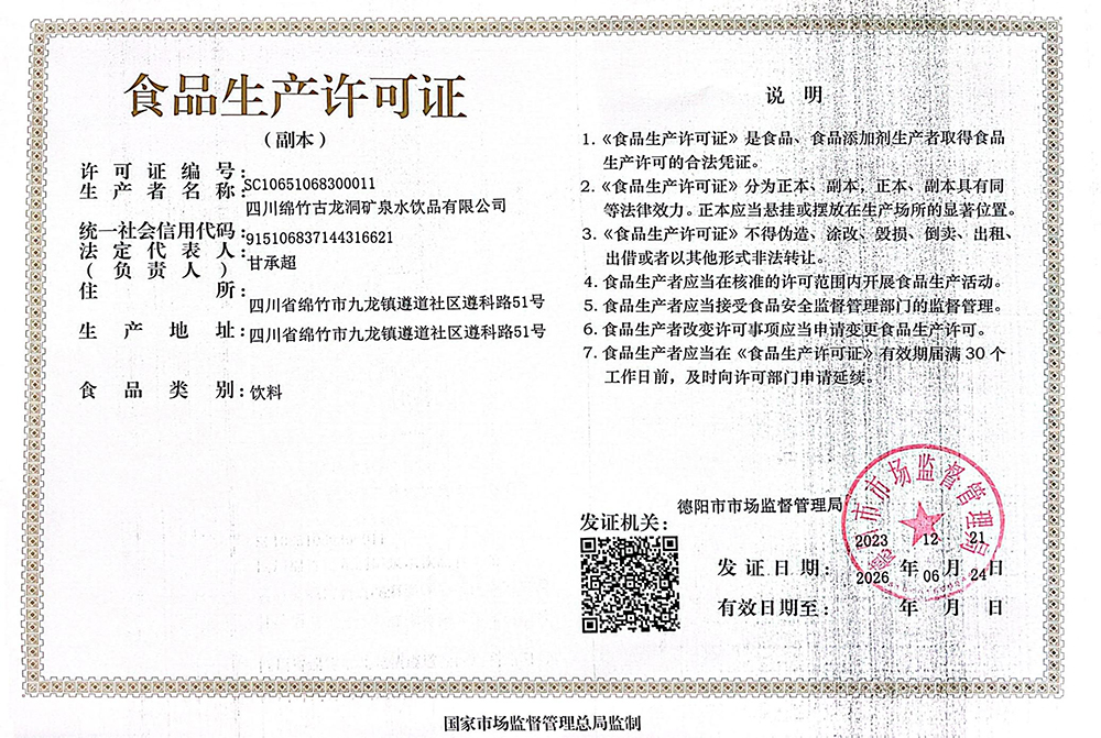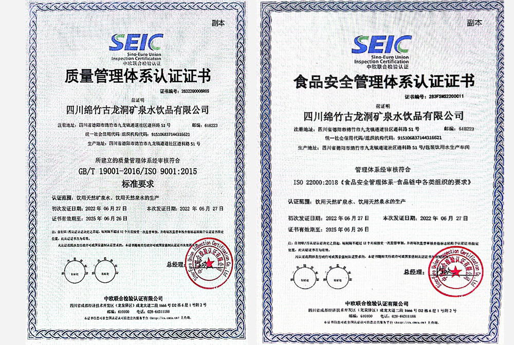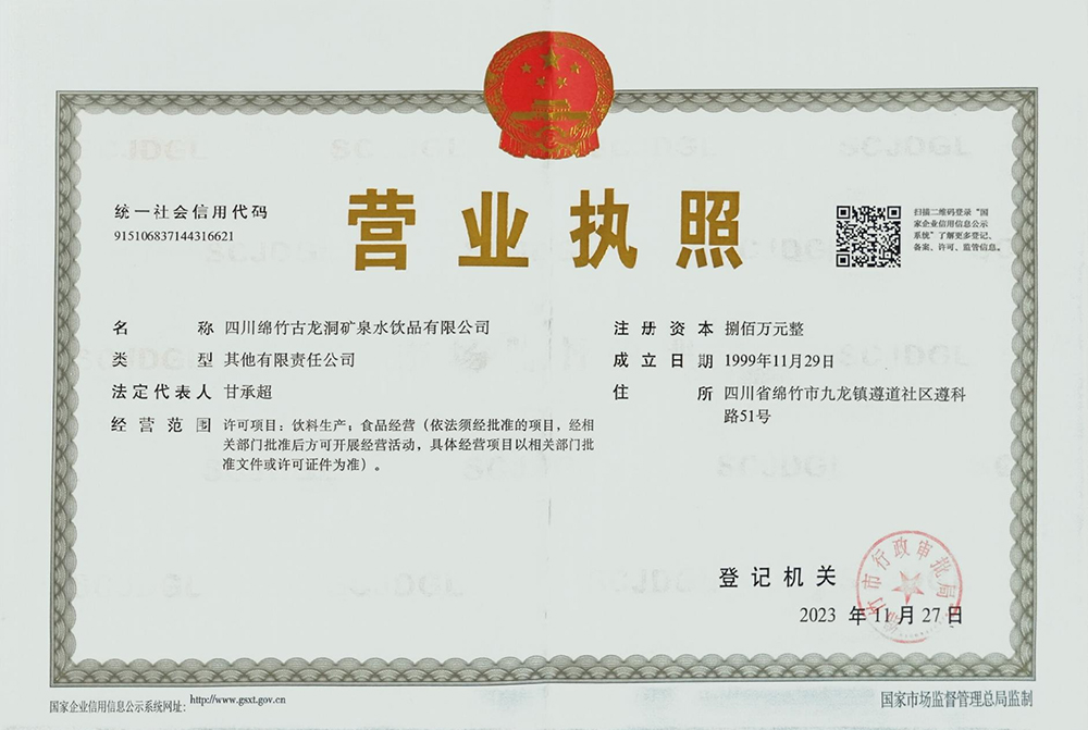 四川绵竹古龙洞矿泉水饮品有限公司始建于1986年,前身为“四川绵竹剑南春饮料厂”,前为国营企业、乡镇企业。1999年改制后为股份制民营企业,是川内较早的专业桶装饮用水生产企业,公司拥有厂区近万平方米,专职技术人员十余名。2008年地震后重建,2022年公司生产设备进行换代升级,新建拥有国内行业先进水平的自动化制水、清洗、灌装的生产线达到无菌标准的高速无菌灌装设备;具有标准实验室的检验、测量设备。